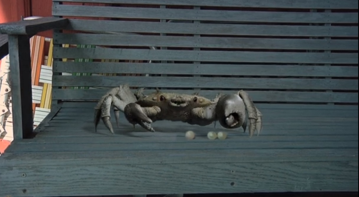 ブドウみたいな成長促進剤を食べるカニ。CGじゃないので独特の味があります。