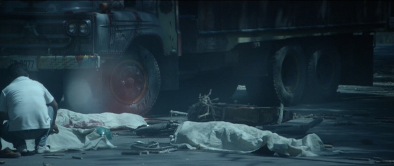 案の定、おあつらえむきのトラックが事故を起こしています。