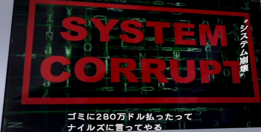 マトリックスみたいな背景にデカデカと「システム崩壊」とかなりの味わい深さを見せてくれる警備システム。