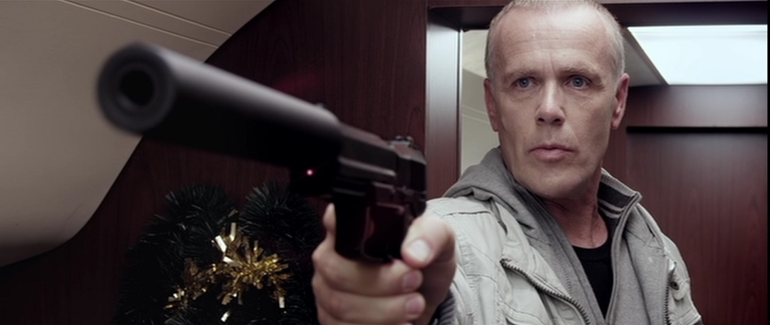 サイレンサーにレーザーサイトまでついたやけにプロっぽい銃で飛び続けることを要求するオッサン。