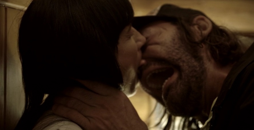 首を絞めてたら鼻を噛みつかれちゃったシーン。