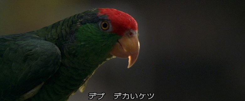 コックの方は本作を観た誰もが忘れられないインパクトを残した名キャラクターですが、インコの方はどうなってしまったのか。残念ながら、中盤でサメに喰われてしまいます。私は人間がモンスターに喰われる場面を観るのが何よりの楽しみなのですが、その反面、鳥が喰われるシーンは非常に心が痛みます。人間はともかく鳥は大事にしてほしい。その点カモメが最後まで生き延びてくれた「ロストバケーション」は大変良い後味を残してくれたのですが。