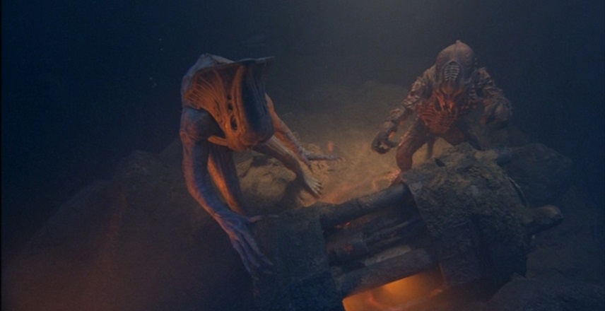 閉鎖された海底研究所で殺人事件が起き、潜入していた殺人者との戦いがメインのサスペンス・アクション映画へと急激にジャンルが変化。