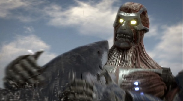 同じアサイラム社製でありながら「めちゃくちゃ面白いクソサメ映画」としての地位を確立して大ヒットしたシャークネードシリーズと対を成し、最後まで「くそつまらないクソサメ映画」としての立場を貫き通したメガ・シャークシリーズ最終作。アサイラムがアメリカより日本の顧客を大事にしているというのは有名な話ですが、それにしてもどっかで見たようなデザインの巨人です。