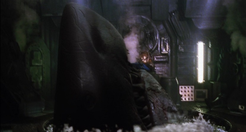 でも潜水艇の出入り口のところに鼻先を突っ込んでくる程度のサービス精神は持ち合わせているようです。サイズ的にも潜水艦の構造的にもちょっと…いやかなりおかしい気がしますが、申し訳程度にでも人を喰うシーンをねじ込むためには仕方ありません。