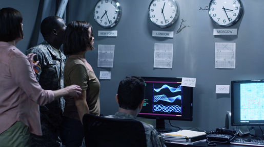 ↑そんな父娘がやっとたどり着いた電話会社からモールス信号を発信し、それをものすごく都合よく米軍基地で受け取る人たち。さらにたまたま母と息子も居合わせております。解読も速すぎて笑う。