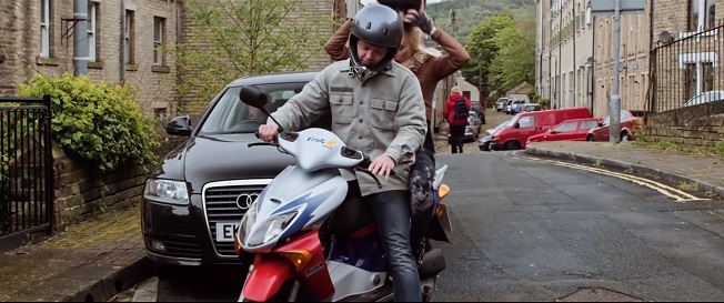 ↑ベックスがバイクから降りて彼氏が去ろうとすると、なぜかアウディからエンブレムがとれています。いや…なんで? ボロくて撮影中に落っこちたの?