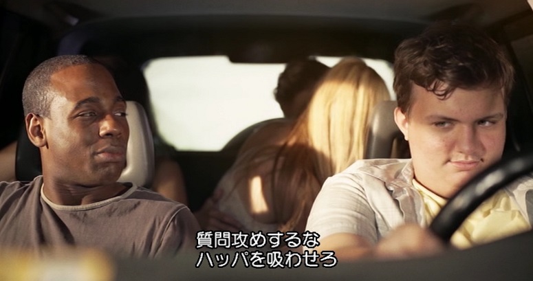 まず運転しているデブがおかしい。何もない直線道路なのにハンドルをやたら動かしまくっています。いや、そんな細かいことはともかく。この助手席の黒人が昼寝をするんですが、それを見て後ろの男がいたずらを仕掛けるくだりがいくらなんでもひどい。なんとわざわざパンツを下して尻を向け、何をするのかと思えば顔に向かってガスと下痢便(?)を噴射するのです。車の中で。イタズラというかイヤがらせっていうレベルですらない。なんかもう一周回って小学生男子的な笑いを狙っているのか。