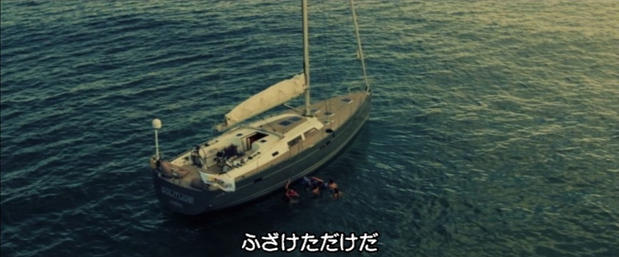 ハシゴが無いと本当に絶対船に戻れないものなのかどうかも微妙ですが、とにかく本作はアラサー6人が船の周りをプカプカ浮いている間に喚きながら自滅していくだけの地味な映画です。何で死んだのかわからない奴もいれば、死ぬ場面すら映らない奴もいます。勝手に頭打って死んだ奴にはもうほんと呆れました。