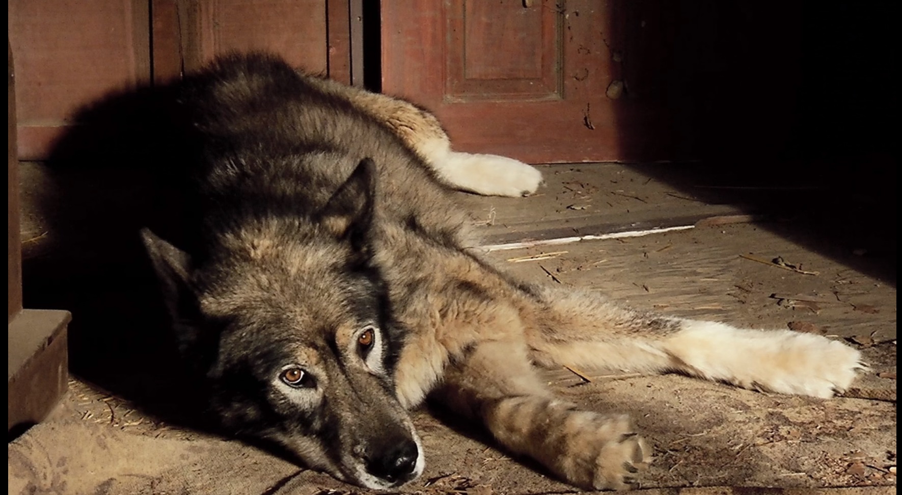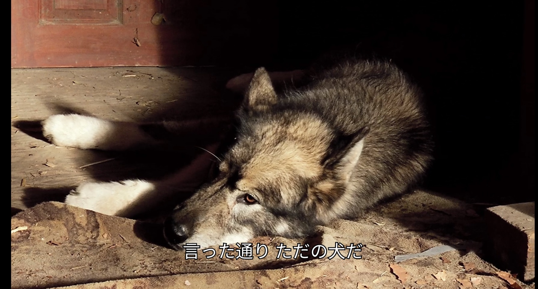 ↓そしてこれがオオカミの死体…のつもりらしいです。なんと寝そべっている犬の静止画像。