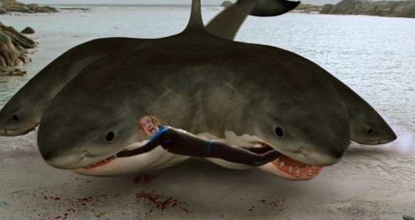 アタマが2つ3つの頃ならまだしも、6つあってもジャマくさいだけで大してメリット無いのがむしろこの映画のセールスポイントでしたね。もはやサメ映画っていうかサメ型モンスター映画と言うべきかもしれません。
