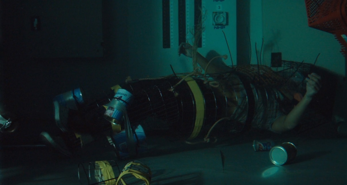 サメがうろつく中、ブレーカーを落としに行くため金属カゴでグリズリースーツならぬシャークスーツを作成。