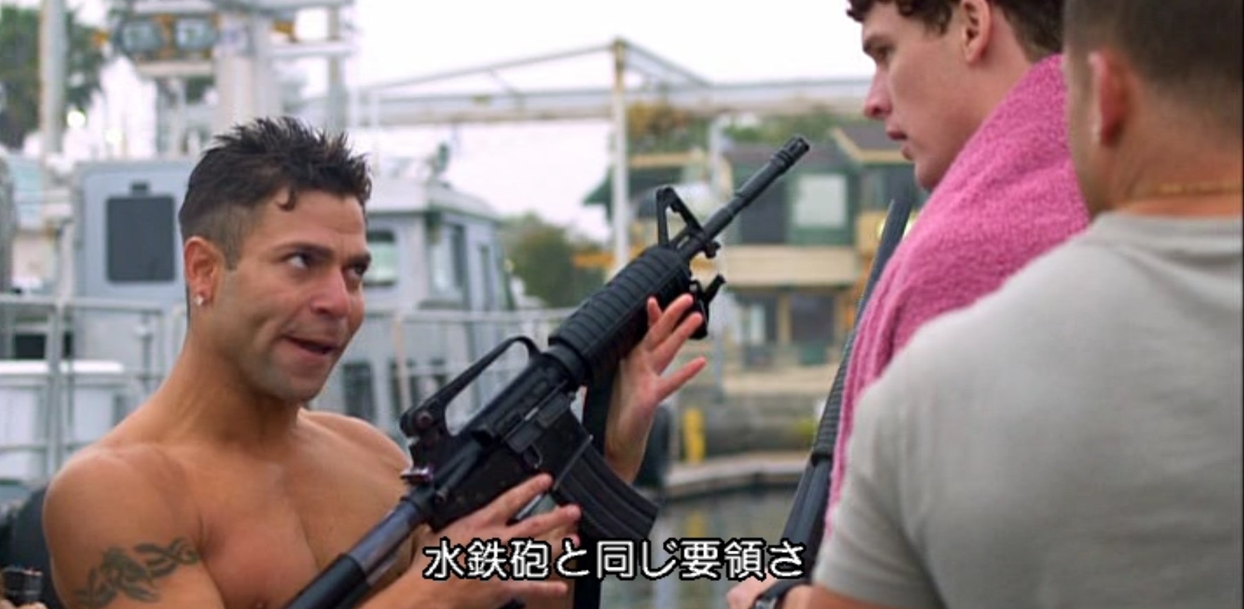 しかもサメ退治に行く前にウォーミングアップとしてジムで筋トレします。あとサメの気を引くエサとしてプロテインバーをばらまいたりします。もうヤバイぐらい脳筋です。