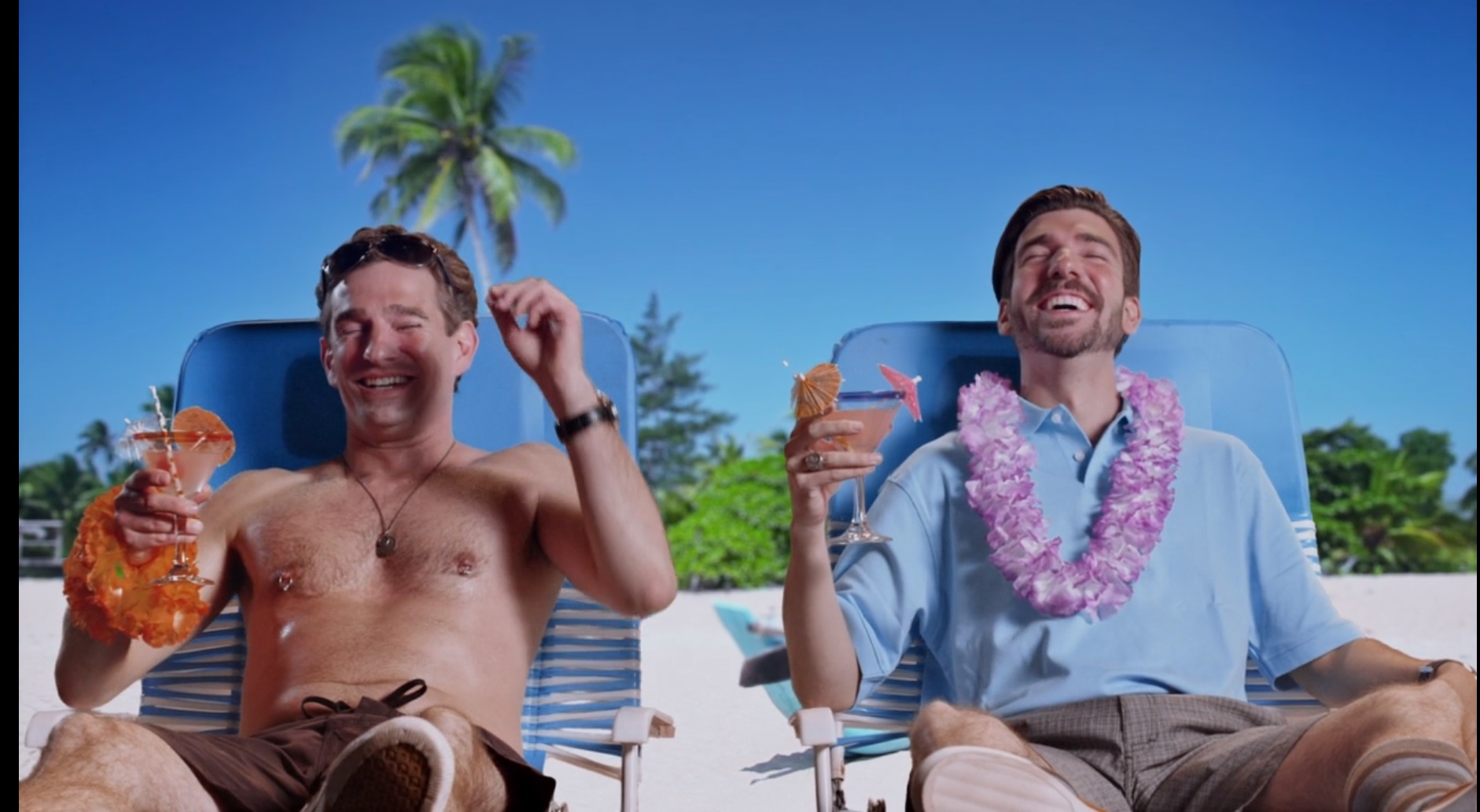 ラストは逃亡先の南国で休暇をエンジョイする2人組。