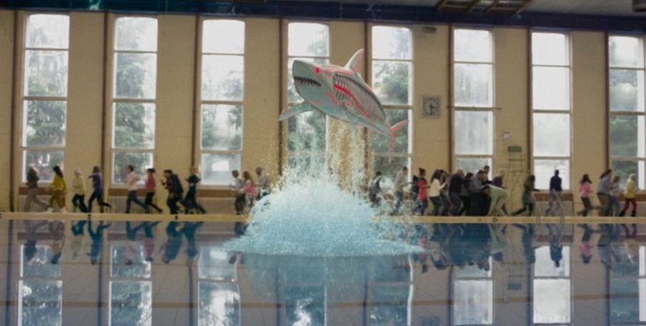 さすがにプールから飛び出してくるサメなんてこの映画くらいしかあるまいと